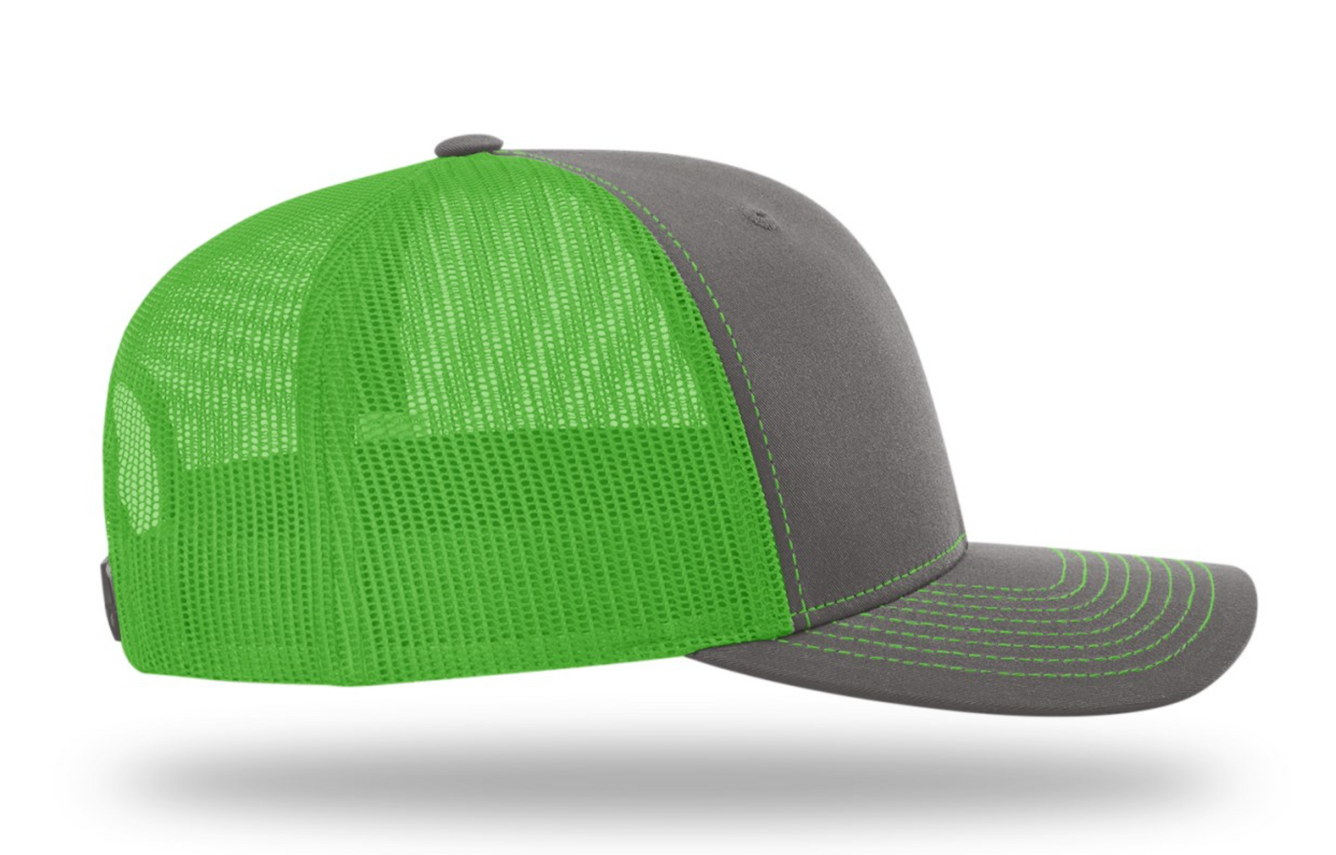 Charcoal Front, Neon Green Back, Richardson 112 Hat (logo embroidered)